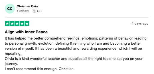 “Olivia is a kind, wonderful teacher and supplies the right tools to set you on your journey” Christian